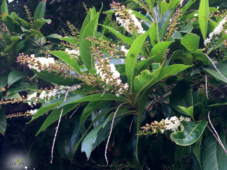 الإزهار: عناقيد أزهار طويلة بيضاء