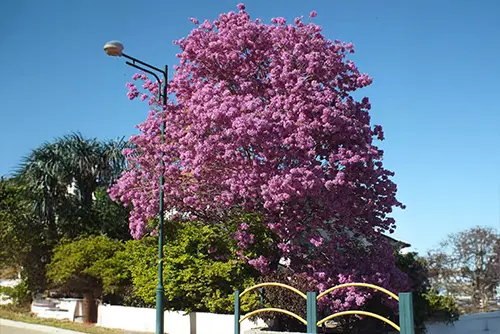 עץ אלביציה ורודה בוגר בחצר