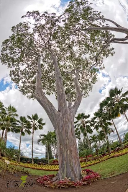 אקליפטוס האיים (Eucalyptus deglupta) הוא עץ גבוה וגדול מאוד. הוא מוכר בעיקר בזכות גזעו היפהפה והבוהק בשלל צבעים בין כחול, סגול, ירוק, כתום ואדום כהה. מהגזע מתקלפים מעת לעת חלקים מקליפתו, החושפים שכבה ירוקה שעם הזמן משנה את צבעה בכל פעם לצבע חדש, בהתאם לתנאי האקלים הספציפיים לאותה עת. כאמור, מכיוון שאזורים שונים בגזע העץ משירים את קליפתם בזמנים שונים, הגזע נראה כמורכב מפסיפס של צבעים, תופעה מיוחדת במינה אשר נתנה לעץ את כינויו, “אקליפטוס קשת בענן”. אקליפטוס קשת בענן הוא אחד ממיני האקליפטוס הבודדים שמוצאם אינו באזור אוסטרליה, אלא דווקא ביערות הטרופיים הגשומים של גינאה החדשה, אינדונזיה והפיליפינים. מכאן גם המקור לשמו הרשמי, “אקליפטוס האיים”. בשל מראהו היפהפה, והתאמתו לאקלים טרופי, גננים רבים אימצו את העץ במקומות בהם האקלים חם ונטול כפור. צבעי הגזע יהיו מרשימים יותר באזורים טרופיים או בעלי מאפיינים טרופיים, כך עצי אקליפטוס האיים גדלים כיום בין השאר בהוואי, באזורים הדרומיים של טקסס, בפלורידה ובקליפורניה.