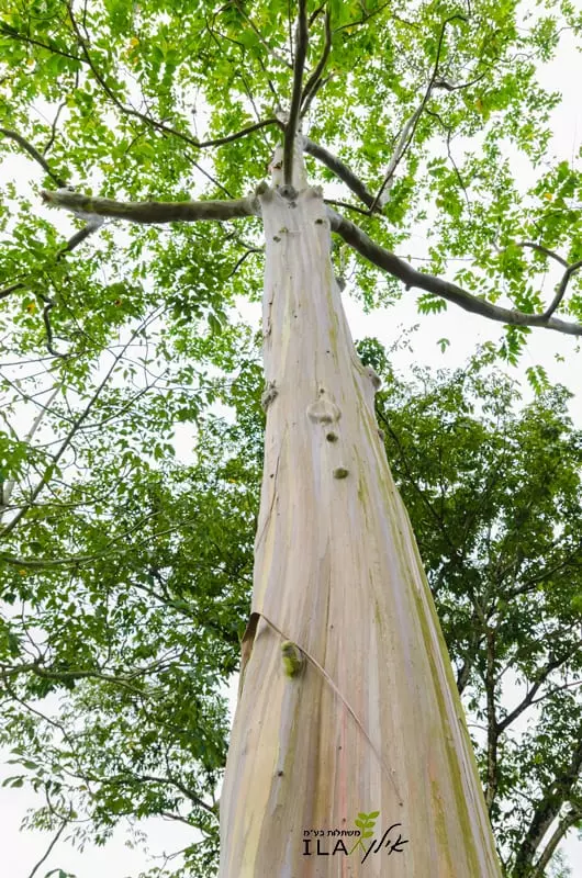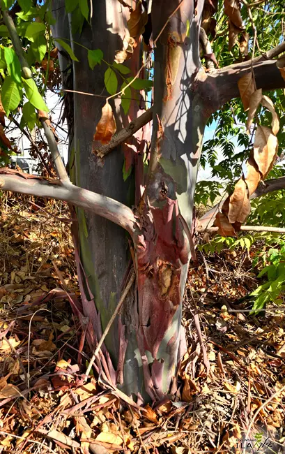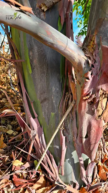 כאמור לעיל, קליפת הגזע החלקה והכתומה מתקלפת בקיץ, וחושפת קליפה חדשה בשלל צבעים. לעיתים נראים בגזע אזורים בצבעי ירוק, כתום, אדום חלוד, חום, סגול וכחול בעת ובעונה אחת. בכמה מהעצים, ובעיקר אחרי הגשם, הצבעים כל כך בוהקים ועשירים עד שהם נראים מלאכותיים, ובאחרים צבעים בגוון פסטלי עדין. הוא עץ מאוד יפה ומרשים אך בעל נטייה לשבר, לכן מומלץ לעקוב ולבנות את השלד שלו היטב בשנים הראשונות וכמובן גם בבגרותו.