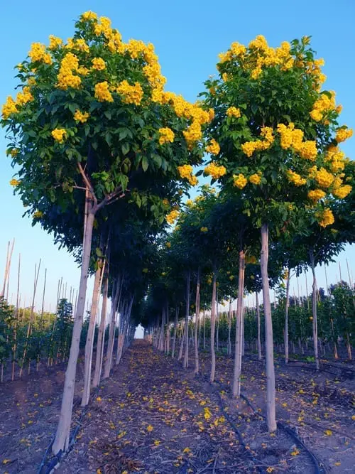 עץ זה אינו חונט פירות, דבר המהווה יתרון בחזותו הנעימה, ללא המראה של זרעים, שבצורות רבות של שמירתם נפגם מראה העצים. עובדה זו מחייבת גם ריבוי שהוא כמעט רק וגטטיבי, מה ששומר על אחידות הקלון הקיים, ולא מתאפשר שוני שמקורו ריבוי מזרעים.