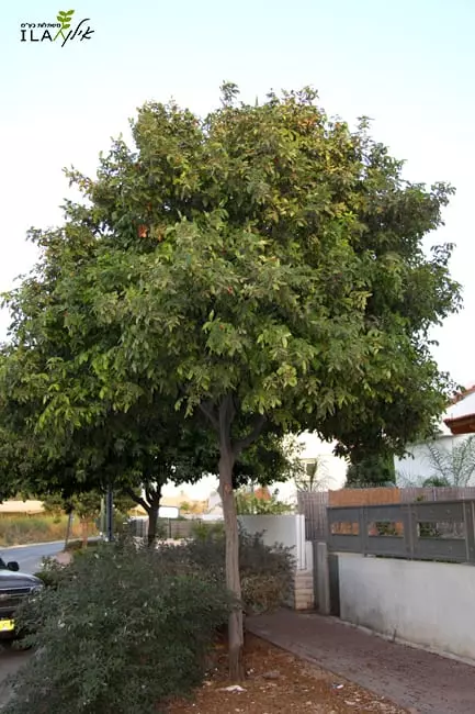 עץ ירוק עד, בינוני עד גדול, עם עצה חזקה מאוד. באזור מוצאו הוא מגיע למימדים מרשימים ביותר. בארץ, עדיין אין מספיק פרספקטיבה ונסיון איתו, אך על פניו, הזן המבויית לא יגיע למימדי הענק של העצים הגדלים פרא ביערות. עלי העץ שעירים מעט וכסופים בצידם התחתון. הם מלבלבים בגוון אדמדם והופכים ירוקים ככל שהם מתבגרים. העץ פורח במעין אשכולות פרחים קטנטנים ו-ורדרדים. לא ניתן לומר שהפריחה חסרת חשיבות גננית אבל גם אינה מאוד בולטת. מופע הפרי הוא המשמעותי, כאשר העץ חונט אשכולות פירות קטנים שגלעיניהם דומים לזיתים בצבעי סגול כהה ושחור. הגלעינים מכוסים בציפה אדומה בולטת ויפה. מופע אשכולות הפרי האדום- שחור, בולט על רקע העלווה הירוקה-כהה והמופע מרשים ומושך את העין. משום שהפרי עסיסי מעט, נשירתו בסתיו גורמת להכתמה של משטחים מרוצפים מתחתיו וכן לתחושה דביקה בדריכה.
