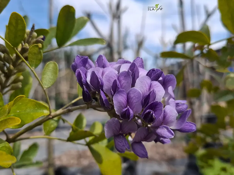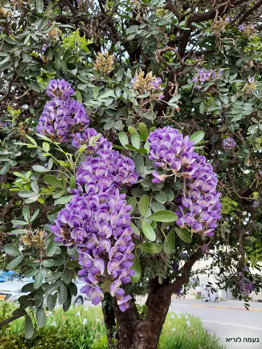עץ קטן וירוק עד שמקורו מדרום-מערב ארה”ב. עלוותו של העץ ירוקה ומבריקה, ויוצרת נוף צפוף ומרשים שצורתו מעוגלת. העץ פורח באשכולות פרחים סגולים-כחולים מרשימים ובולטים מאוד. ריח הפרחים מזכיר מעט את ריחו של משקה קל בטעם ענבים. הפרחים מופיעים על העץ באביב. העץ מוציא פרי דמוי בוטן בצבע אפור ובתוכו זרעים אדומים יפים ורעילים מאוד. הפרי קשה מאוד לפיצוח. שורשיו של העץ אינם תוקפניים ולכן אין חשש לשתול אותו בסביבת מבנים וריצוף. העץ חסכן מאוד בהשקיה, אך מאידך גם קצב צמיחתו איטי יחסית. השקיית עזר בקיץ תשפר את מראה העלווה. העץ עמיד בתנאי חום וקור המצויים בארצנו ואפילו יעדיף אקלים חם ויבש. כן, העץ יתאים לכל סוגי הקרקעות, מלבד מלוחות. תכונותיו של העץ הופכות אותו לתוספת צבעונית ואטרקטיבית במיוחד כעץ רחוב ובגינות, גם כגדר חיה.