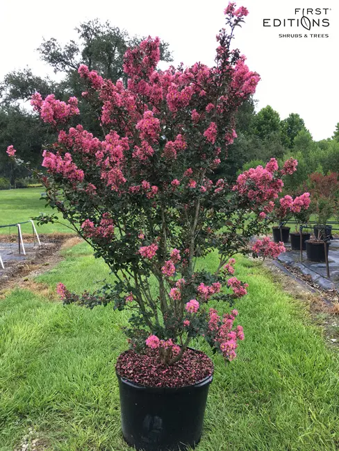 The Magic™ series of Indian Lagerstramia, imported from leading nurseries abroad, represents the pinnacle of beauty and uniqueness. These meticulously selected varieties, developed in the USA by Bailey Nurseries under the First Editions® brand, have undergone rigorous testing to ensure their resilience against wilt and other uncommon diseases. The Magic™ Lagerstramias are renowned globally for their durability, early and prolonged flowering, distinctive foliage—ranging from striking black to deep red-purple hues—and their flat, shiny leaves that maintain their elegance without folding.